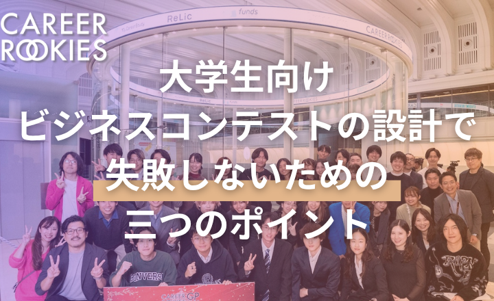 本記事は、CAREER ROOKIES GP主催者であり、マイナビ在籍時代よりキャリア甲子園・キャリアインカレ等の企画・運営に携わってきた経験をもとに執筆しています。企業主催ビジコンのプロデュース・支援についてのお問い合わせはお気軽にどうぞ。