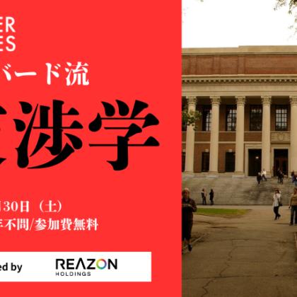 学生向けに超プレミアムな実践講座を特別開講!ハーバード大学で学問体系されている「交渉学」。日本で学べる機会はとても限られていますが、一生涯使えるスキルを身につけるきっかけになるはずです。