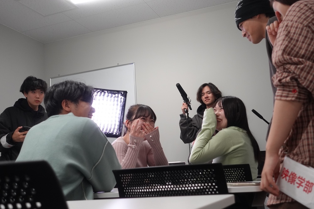 ミーティングでは「普段スマホ動画ってどのように視聴する?」「企業や商品の宣伝動画は見ないよね」「ショート動画は最初の1秒が勝負」「若者が関心を持ちやすいテーマは?」など活発な議論が行われ、食洗機の魅力をメタファーとした「食洗機彼氏図鑑」というコンセプトが登場。そして映像制作を専攻して学ぶ学生がいたことで、普段の学びの成果を発揮して脚本や構成、キャストのアサイン、費用管理、撮影編集も全て学生が行いました。