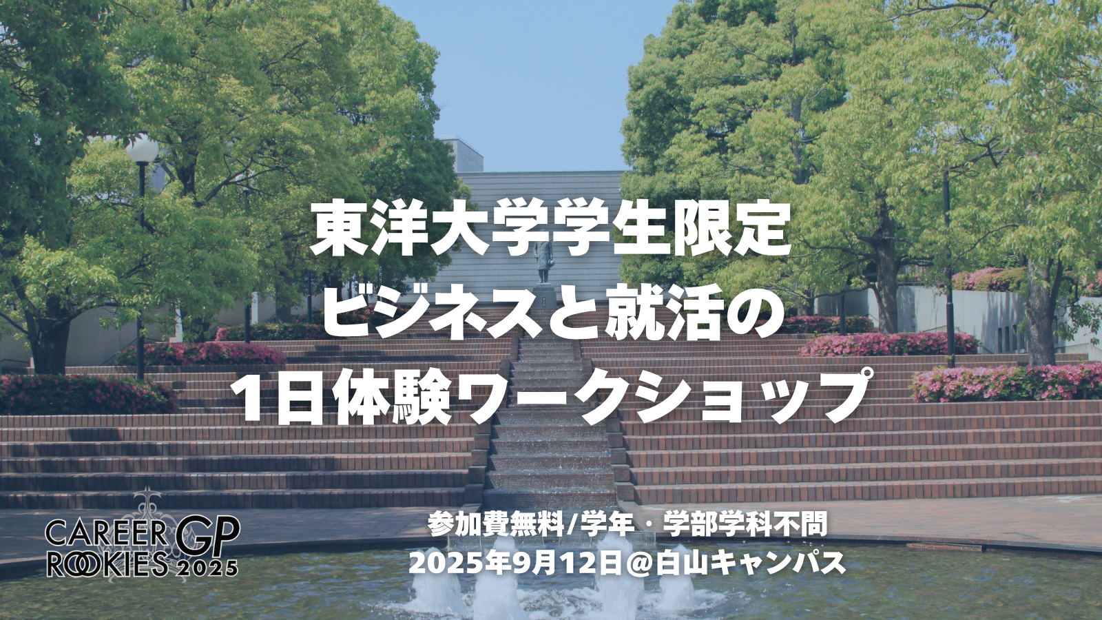 *なお、本ワークショップ優勝チームは全国学生ビジネスコンテスト「CAREER ROOKIES GP 2025」の東洋大学代表として予選通過のシード権を付与します(参加は任意)。